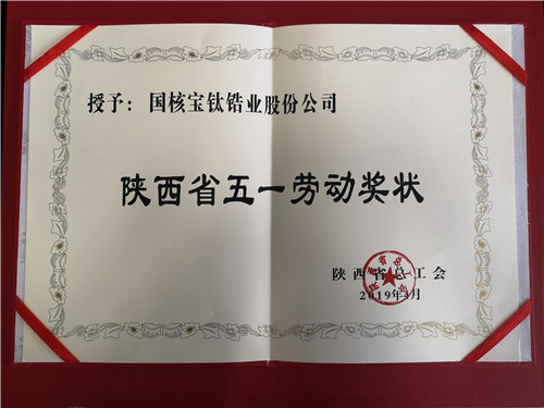 4月28日下午,陜西省慶祝“五一”國際勞動節暨表彰大會在西安隆重舉行,省委書記、省人大常委會主任胡和平,省委副書記、省長劉國中,省委副書記、省監察委員會主任賀榮等領導出席會議并為獲獎集體和個人頒獎。會上,國核寶鈦鋯業股份公司榮獲“陜西省五一勞動獎狀”。